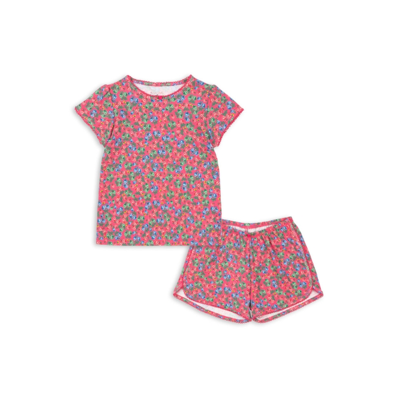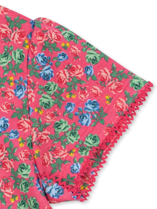 Komplet dziecięcy składający się z koszulki i spodenek z miękkiej organicznej bawełny marki Konges Slojd. Kwiatowe wzory i dziewczęce kolory dodają niezwykłego uroku. Idealnie sprawdzi się w domu i na zewnątrz. Wykonany z bawełny organicznej. Produkt jest certyfikowany przez CU1094701.