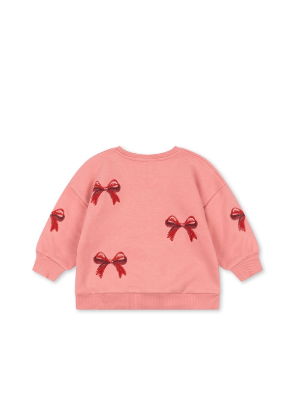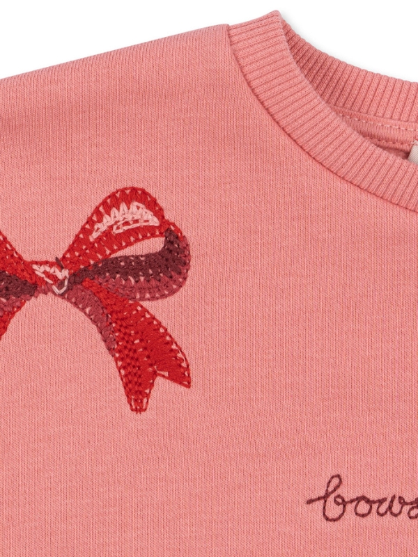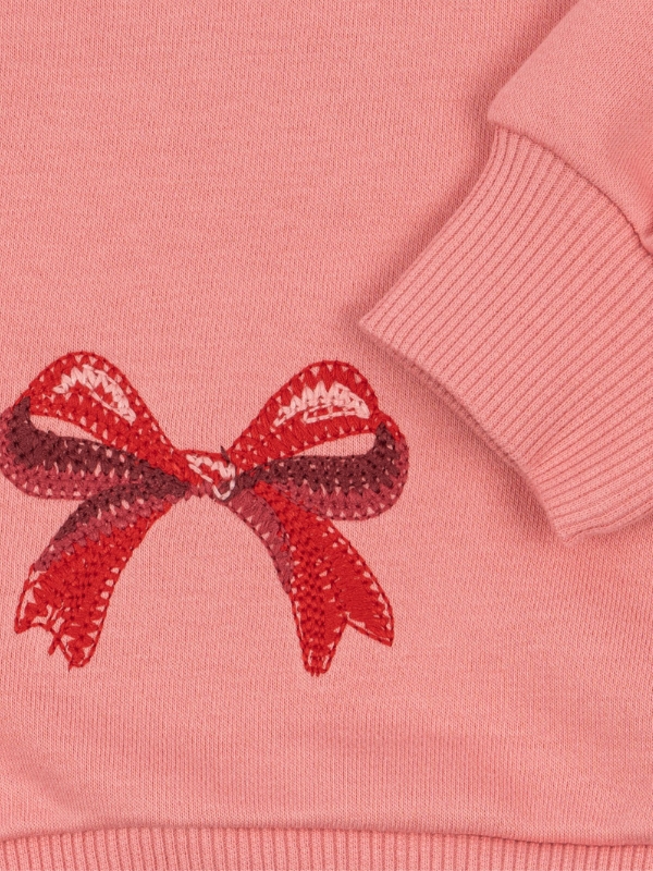 Klasyczna bluza Lou jest ciepła i wygodna. Wykonana z organicznej bawełny z odrobiną stretchu. Ma różowy kolor i starannie wykonane naszywki z kokardkami. Podszewka została stworzona z miękkiego materiału, który zapewni ciepło w chłodniejsze dni. Produkt zawiera 90% bawełny certyfikowanej przez OCS, certyfikowanej przez CU1094701.