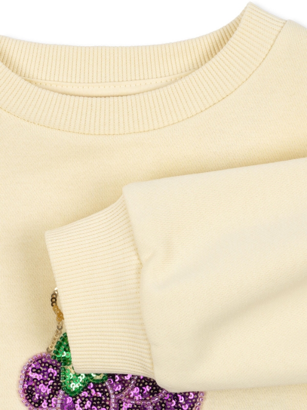 Klasyczna bluza Lou jest ciepła i wygodna. Wykonana z organicznej bawełny z odrobiną stretchu. Ma jasny żółty kolor i starannie wykonaną cekinową naszywkę w kształcie winogrona. Podszewka została stworzona z miękkiego materiału, który zapewni ciepło w chłodniejsze dni. Produkt zawiera 90% bawełny certyfikowanej przez OCS, certyfikowanej przez CU1094701.