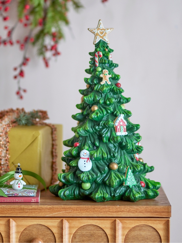 Choinka Eddy Deco z oświetleniem marki Bloomingville. Piękna dekoracja ozdobiona fantazyjnymi motywami świątecznymi. Wbudowane światełka dodają ciepłego i przytulnego blasku, tworząc magiczną atmosferę. Idealna jako uroczy detal w okresie świątecznym.