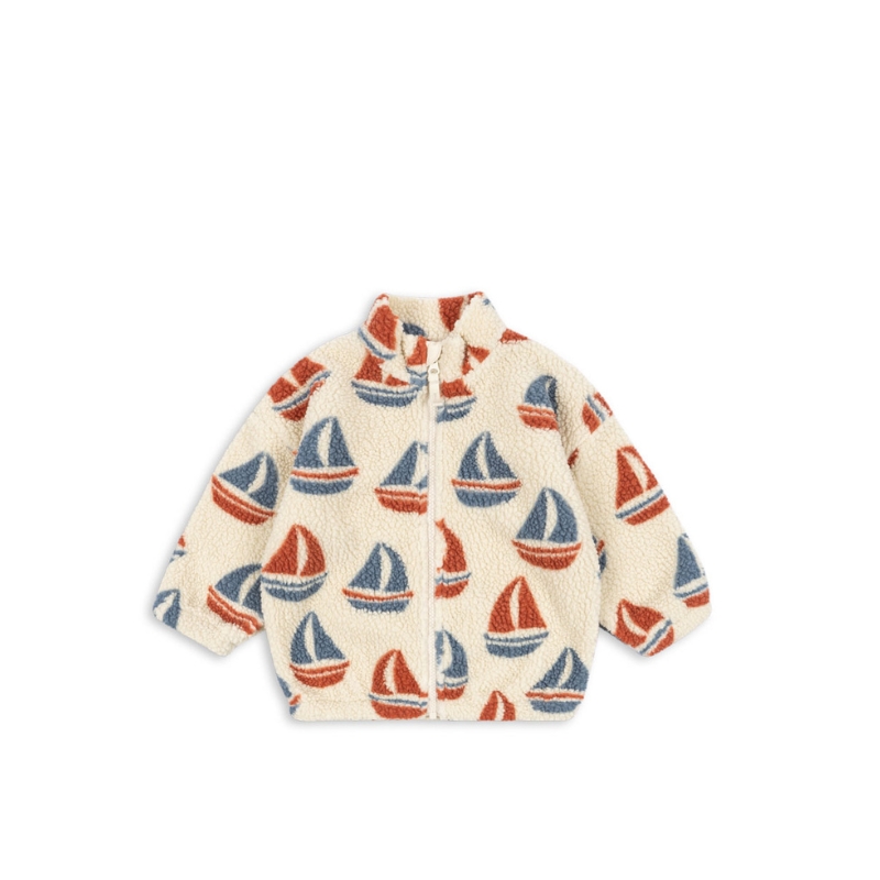Ciepła kurtka typu teddy marki Konges Slojd. Wykonana z miękkiego polaru, jest świetnym wyborem dla Twojego dziecka. Posiada wysoki kołnierz dodatkowo osłaniający szyję przed zimnem. Dzięki elastycznym mankietom kurtka dobrze przylega do ciała dziecka. Dodatkowo zamek jest wyposażony w zabezpieczenie chroniące brodę. Produkt ten posiada certyfikat OEKO-TEX® STANDARD 100, klasa 1 wydany przez DTI Tekstil, numer licencji: DTI 2276-361. Wykonany w 100% z poliestru pochodzącego z recyklingu, certyfikowanego przez GRS, certyfikowanego przez CU 1094701.