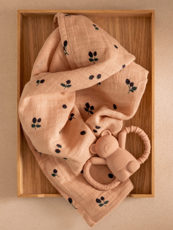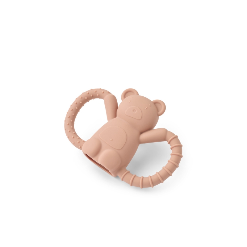 Gryzak dla niemowląt z motywem misia marki Liewood. Niezbędnik w uśmierzaniu bólu dziąseł. Został wykonany z lekkiego silikonu. Zróżnicowane powierzchnie gryzaka zapewniają dodatkowe doznania sensoryczne. Dzięki swojemu kształtowi i rozmiarowi gadżet jest łatwy do trzymania dla małych rączek. Produkt jest także łatwy do czyszczenia.