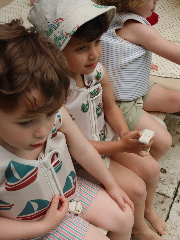 Kamizelka wypornościowa marki Konges Slojd to idealny dodatek do pływania, gdy Twoje maluchy dopiero zaczynają pluskać się w wodzie. Dodaje naturalnej wyporności i pomaga im poczuć się komfortowo w wodzie, podczas nauki pływania.