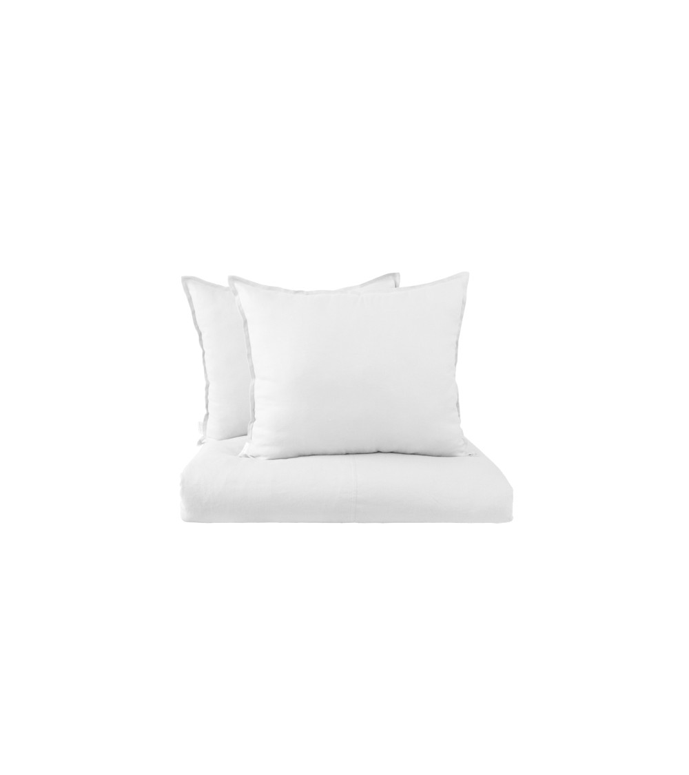 Komplet pościeli lnianej w kolorze białym. Poszewka na kołdrę i 2 x poduszkę.