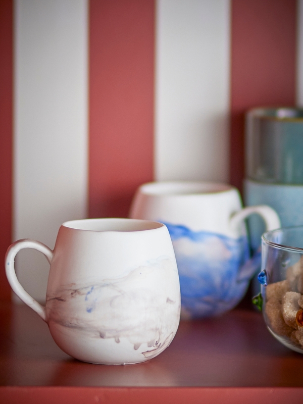 Zestaw kubków Lyre marki Bloomingville. Szkliwo ma efekt przypominający akwarelę w ciepłych odcieniach brązu, co nadaje mu żywy i lekki wygląd. Kamionkowy materiał oraz organiczny kształt sprawiają, że kubki są naprawdę wyjątkowe. Zestaw zawiera cztery kubki. Naturalne różnice w szkliwie sprawiają, że każdy kubek jest niepowtarzalny. Można myć w zmywarce, używać w kuchence mikrofalowej i piekarniku.