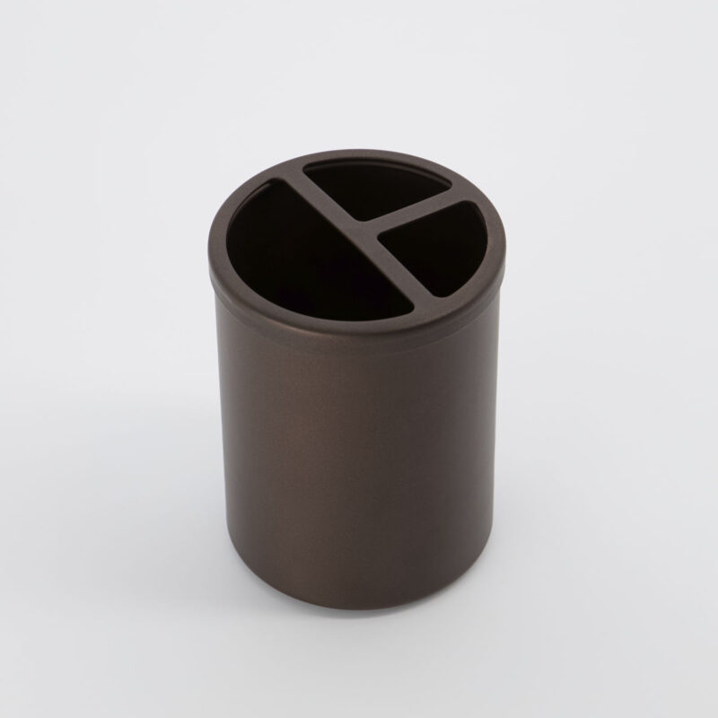 Klasyczny kubek na szczoteczki w kolorze matowego brązu marki House Doctor. Doskonale prezentuje się z dozownikiem do mydła z tej samej serii.