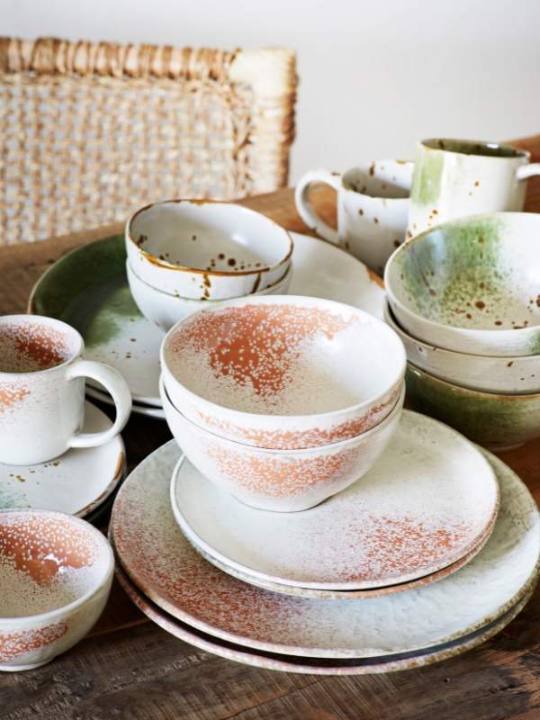 Kubek z kamionki marki Madam Stoltz w kolorach naturalnej bieli i pomarańczowego to doskonała propozycja, by uzupełnić zastawę stołową na wiosenne dni. Można myć w zmywarce.