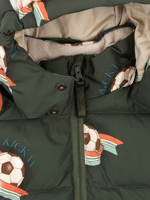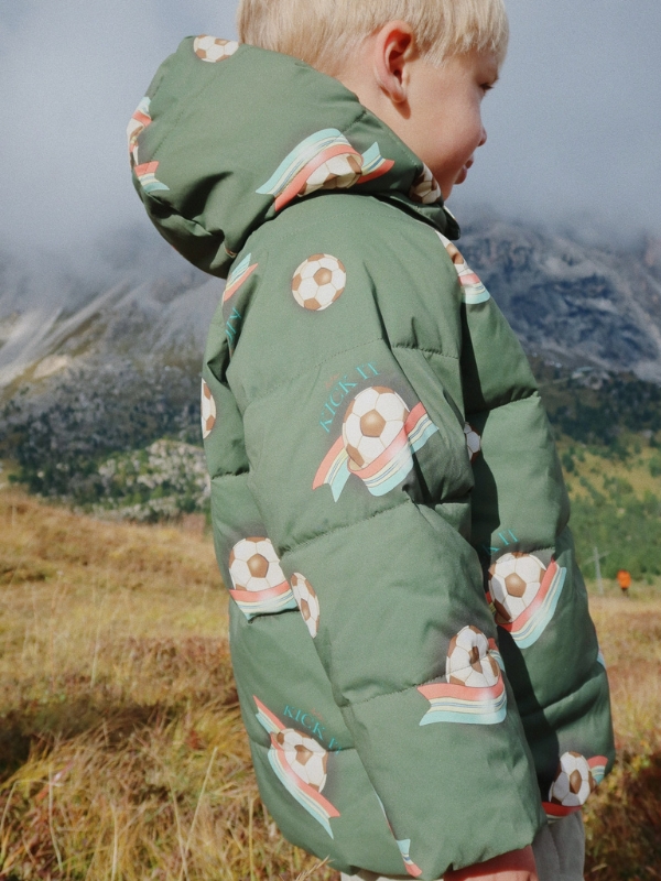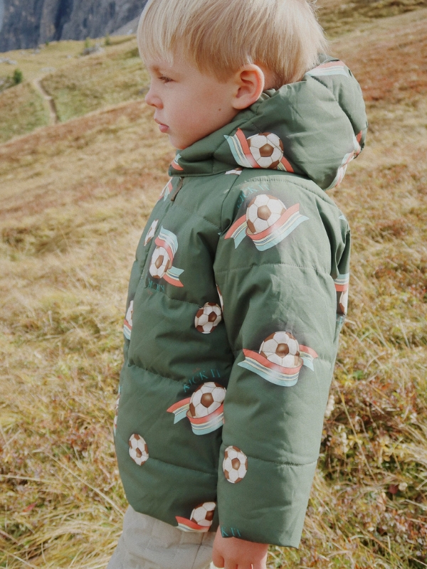 Kurtka puchowa Nuka marki Konges Slojd. Ciepła i funkcjonalna. Wykonana z wodoodpornego i wiatroodpornego materiału BIONIC-FINISH® ECO. Posiada elastyczne mankiety i praktyczne kieszenie boczne. Dodatkowo kurtka jest zaprojektowana z odpinanym kapturem. Wykończona specjalną wyściółką THERMOLITE® EcoMade, zapewniającą skuteczną izolację. Produkt posiada certyfikat OEKO-TEX® STANDARD 100, klasa 1 wydany przez DTI Tekstil, numer licencji: DTI 2276-361.