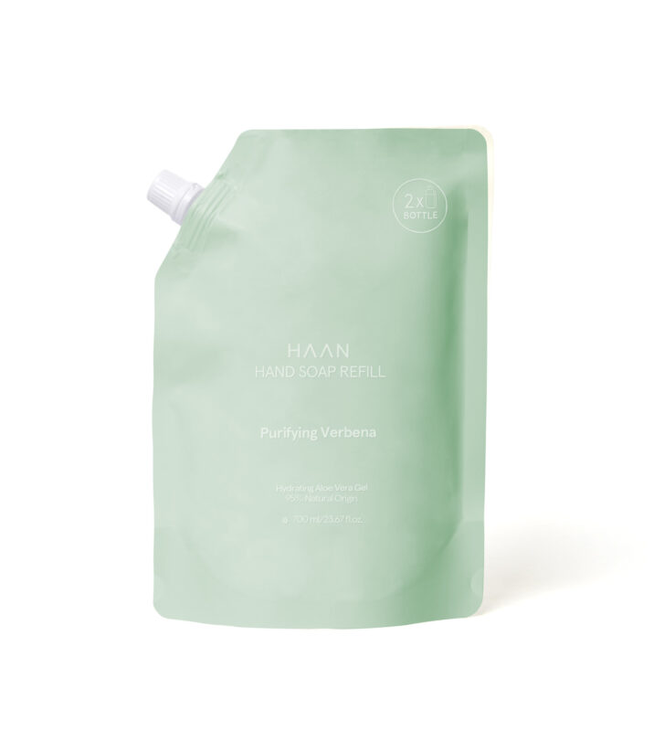 Formuła mydła do rąk Haan z nawilżającym aloesem pozostawia dłonie czyste, miękkie i odżywione, a nasz bestsellerowy zapach natychmiastowo odświeża skórę. Dzięki temu woreczkowi będziesz mógł napełnić jego butelkę 2 razy. Nie musisz kupować więcej plastikowych butelek. Uzupełnij i używaj ponownie przez całe życie!
