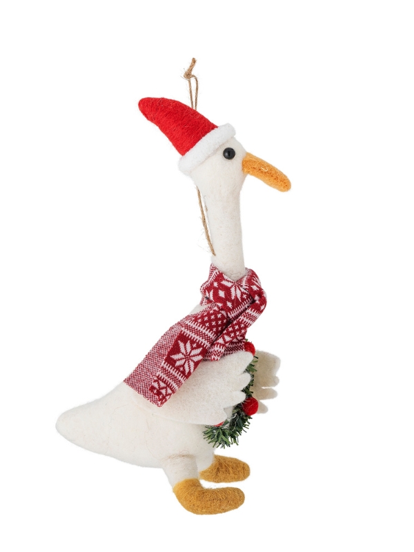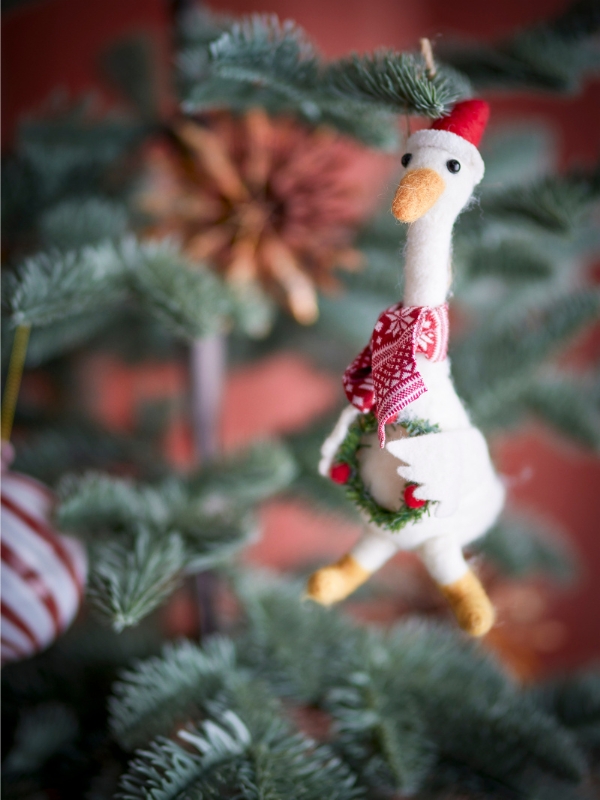 Ozdoba Arlo marki Bloomingville to urocza świąteczna gąska. Gęś jest ubrana w czapkę Mikołaja i świąteczny szalik. W swoich małych skrzydłach trzyma świąteczny wieniec z czerwonymi pomponami. W zestawie znajduje się praktyczny sznurek do zawieszenia. Dekoracja idealnie nadaje się do dodania przytulnego i świątecznego akcentu do każdej przestrzeni.