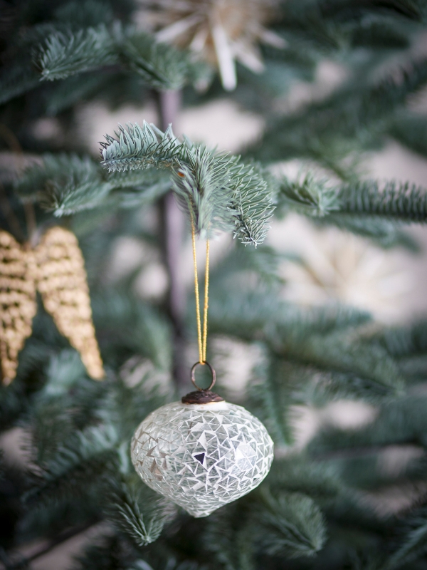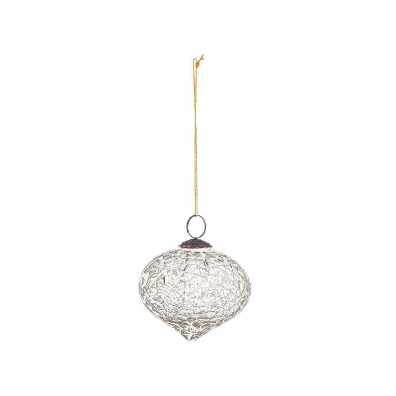 Ozdoba Nadine marki Bloomingville. Elegancka szklana kula z pięknym efektem mozaiki, która zachwyca odbijającym światłem. Ozdoba zawieszona jest na cienkiej złotej nitce, dzięki czemu stanowi elegancki dodatek na choinkę lub świąteczny stół. Ten klasyczny i ponadczasowy wzór doda blasku i piękna każdej świątecznej aranżacji.