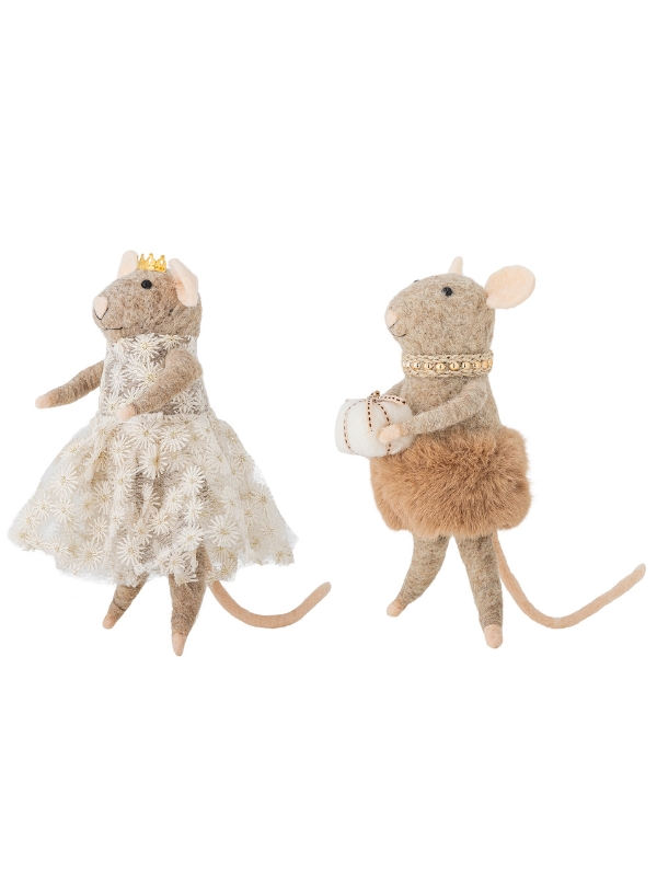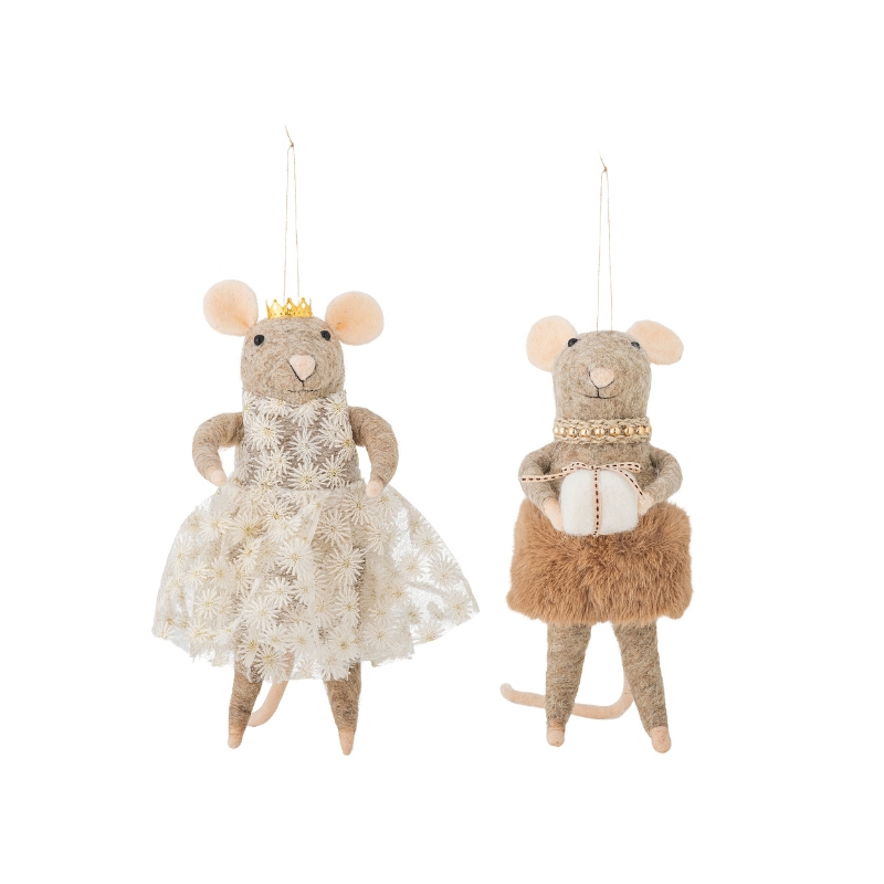 Ozdoba Peo marki Bloomingville przedstawia dwie urocze myszki. Są wykonane z filcowanej wełny. Ich urocze ubranka tworzą ciepłą i przytulną atmosferę, dzięki czemu idealnie uzupełnią świąteczne dekoracje. Dzięki cienkiemu sznurkowi można je łatwo zawiesić na haczyku, gałązce lub wykorzystać jako element kreatywnej aranżacji.