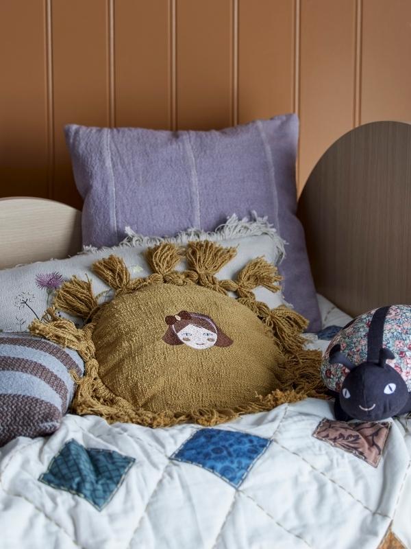 Okrągła poduszka z wyhaftowaną dziewczynką marki Bloomingville Mini doskonale odmieni każdy dziecięcy pokój. Wokół krawędzi poduszkę zdobią duże frędzle. Wykonana jest z bawełny. Można prać w pralce w 40 stopniach C.