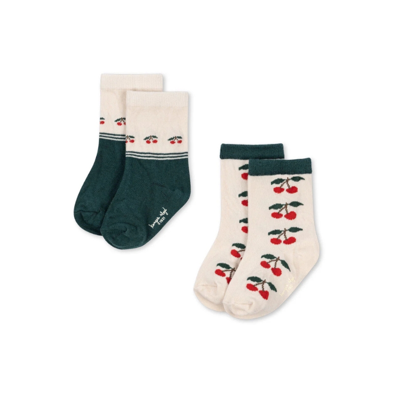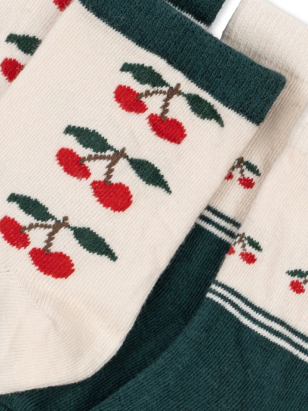 Naszym ulubionym małym pomocnikiem w doborze stroju jest para praktycznych skarpetek. Miękkie i wygodne ze wzmocnioną piętą i palcami dla wygodnego dopasowania. Ozdobione uroczym wzorem w wisienki. Ten produkt posiada certyfikat OEKO-TEX® STANDARD 100, klasa 1 wydany przez DTI Tekstil, DTI 2276-361