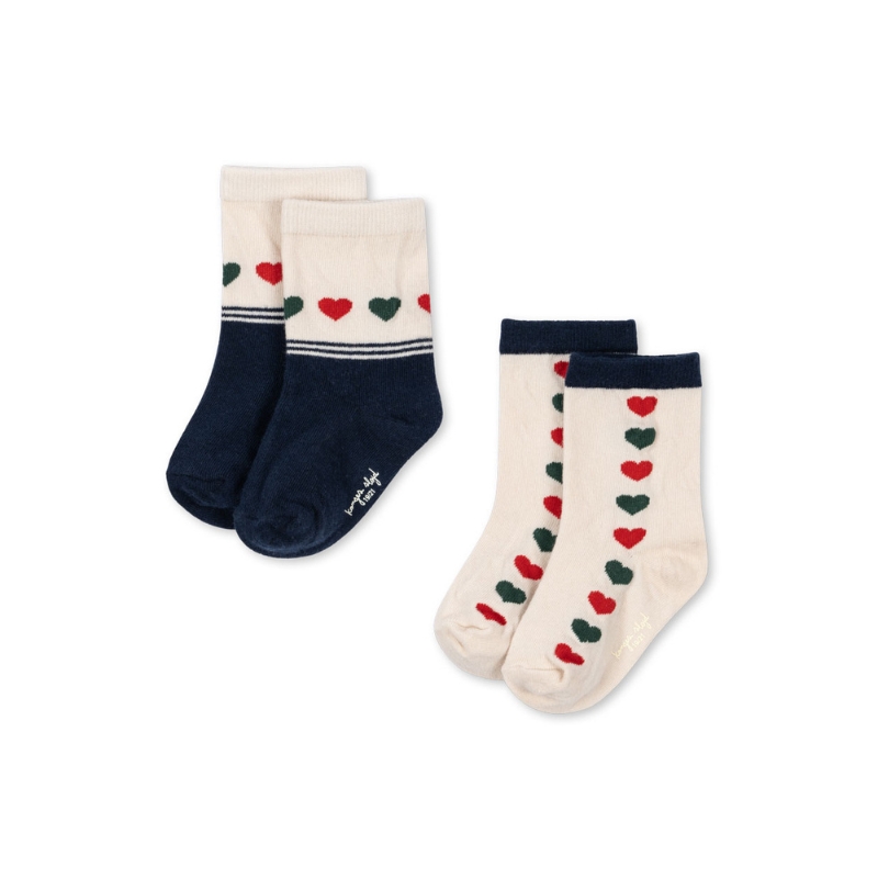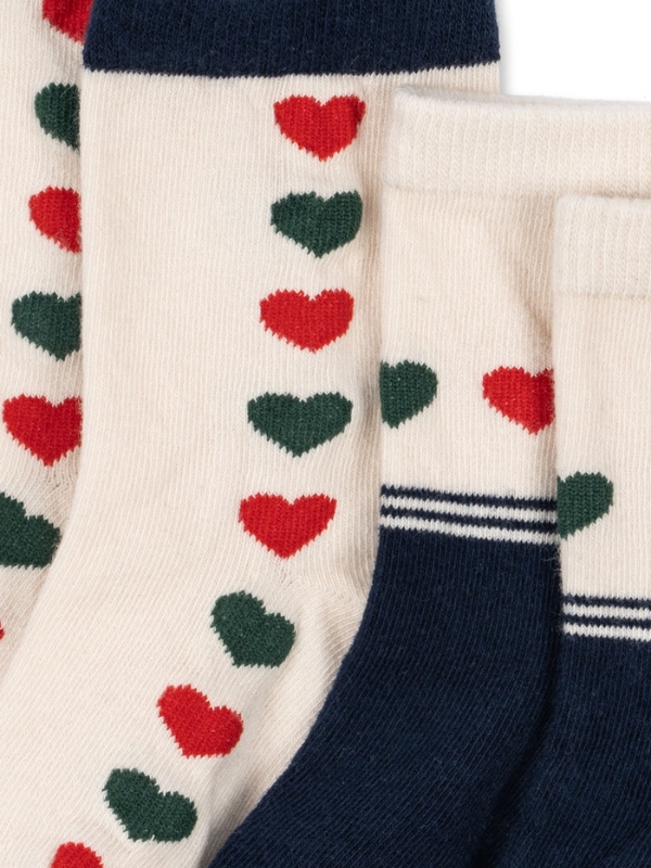 Naszym ulubionym małym pomocnikiem w doborze stroju jest para praktycznych skarpetek. Miękkie i wygodne ze wzmocnioną piętą i palcami dla wygodnego dopasowania. Ozdobione uroczym wzorem w serduszka. Ten produkt posiada certyfikat OEKO-TEX® STANDARD 100, klasa 1 wydany przez DTI Tekstil, DTI 2276-361