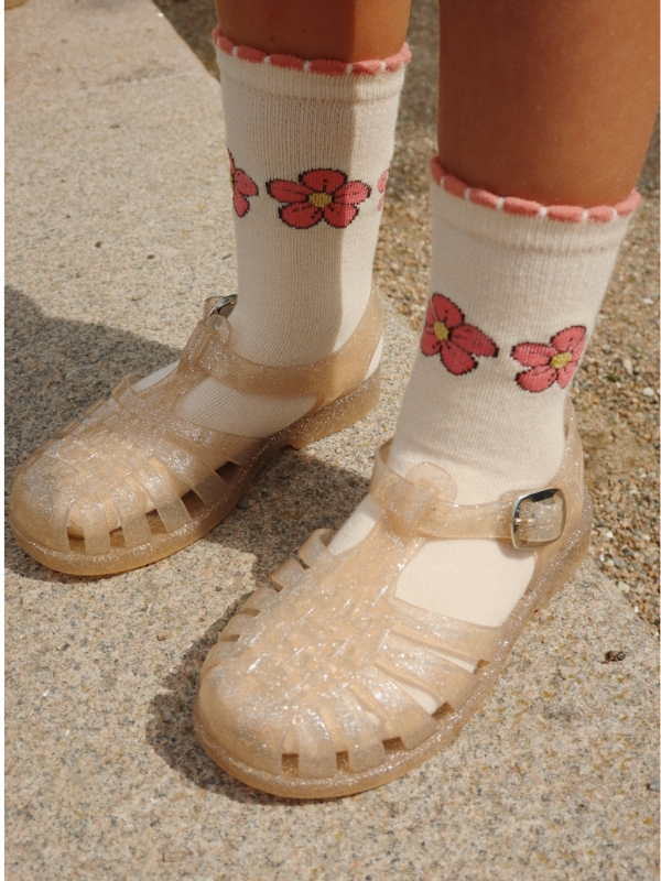 Naszym ulubionym małym pomocnikiem w doborze stroju jest para uroczych skarpetek. Miękkie i wygodne ze wzmocnioną piętą i palcami dla wygodnego dopasowania. Ozdobione ślicznym wzorem w kwiaty. Ten produkt posiada certyfikat OEKO-TEX® STANDARD 100, klasa 1 wydany przez DTI Tekstil, DTI 2276-361