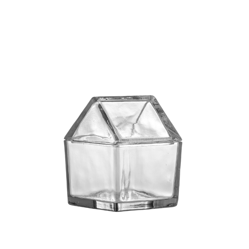 Słoik Elius z pokrywką marki Bloomingville. Szklany pojemnik w kształcie domku. Idealnie nada się do przechowywania pierników.