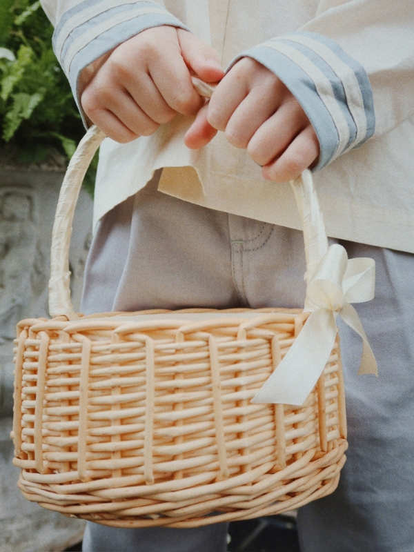 Pleciony kosz dla małych dziewczynek i chłopców marki Konges Slojd. Znajdzie zastosowanie zarówno jako koszyk na wielkanocną święconkę, jak i do sypania kwiatków na uroczystościach.