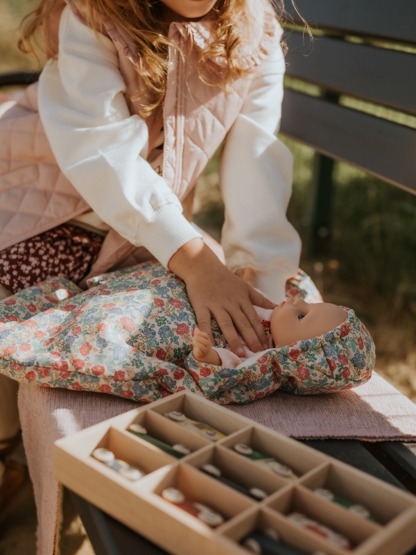Miękki śpiworek dla małych rodziców lalek. Pozwala utulić w nim swoje ulubione lalki do snu. Warstwa zewnętrzna jest wykonana z miękkiej, przyjemnej w dotyku bawełny. Produkt posiada certyfikat OEKO-TEX® STANDARD 100, klasa 1 wydany przez DTI Tekstil, DTI 2276-361. Odpowiedni dla dzieci w wieku od 3 lat.