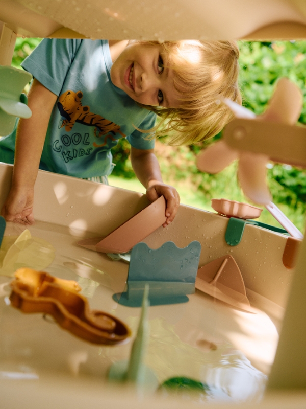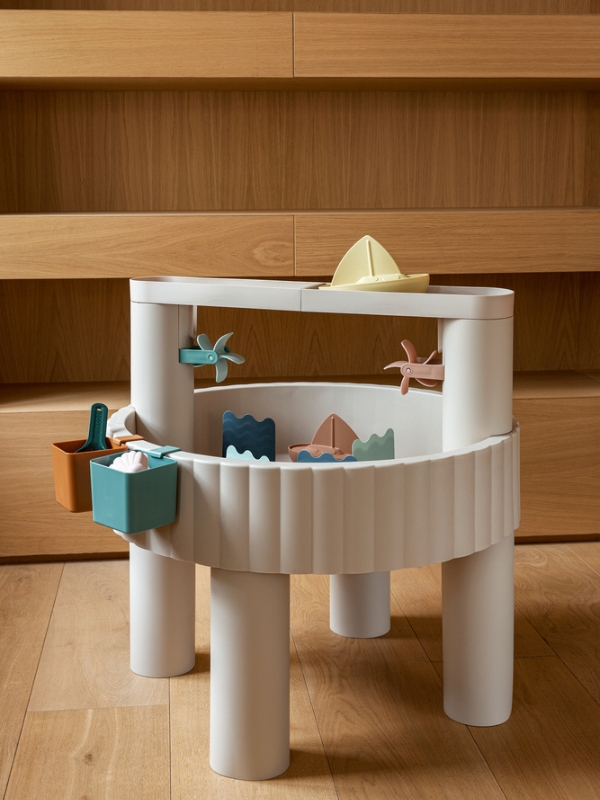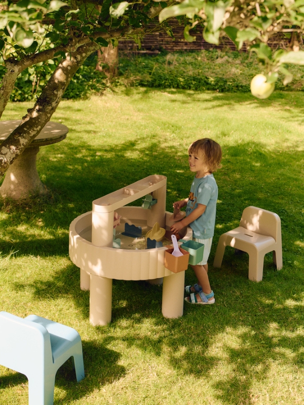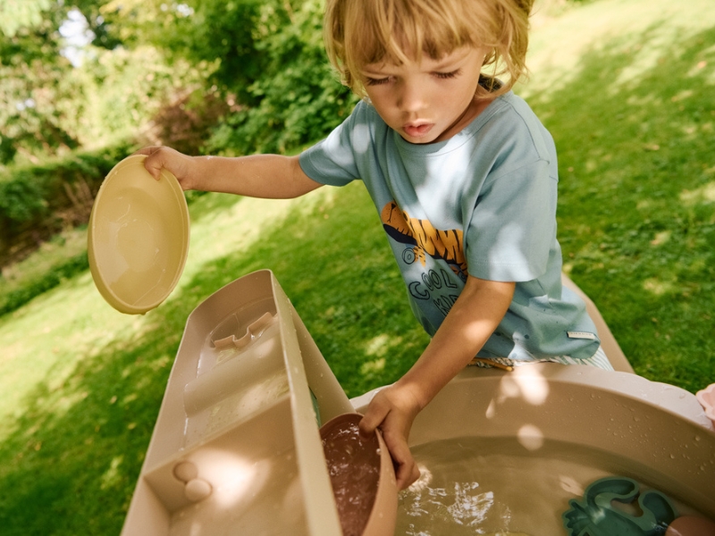 Wielofunkcyjny stolik Sepp marki Liewood to najlepszy sposób na rozwój wyobraźni, zdolności manualnych oraz kreatywnego myślenia dla Twojego dziecka. Zestaw oferuje aż cztery różne funkcje – piaskownicy, stolika do zabawy wodą, schowka na zabawki i stolika do rysowania. Specjalna konstrukcja zestawu umożliwia nasypanie do niego piasku lub nalanie wody. Po zabawie można zamknąć pojemnik dołączonym do zestawu blatem i użyć jako miejsce do przechowywania zabawek lub stolik do rysowania. Zestaw zawiera także akcesoria do zabawy: młynki, most z lejkami, foremki w kształcie zwierząt morskich, pojemniki, łódki i łopaty, które dodatkowo zainteresują dziecko. Pokrywa chroniąca stół przed czynnikami atmosferycznymi sprawia, że produkt może być używany zarówno wewnątrz, jak i na zewnątrz. Łatwy montaż i demontaż.