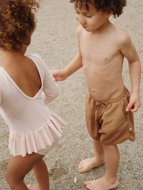 Szorty kąpielowe marki Konges Slojd. Klasyczny i wszechstronny design, który przypadnie każdemu do gustu. Spodenki wykonane z miękkiego i szybkoschnącego materiału, który jest lekki i wygodny w noszeniu. Wyposażone w boczne kieszenie oraz elastyczny pas ze sznurkiem do regulacji.